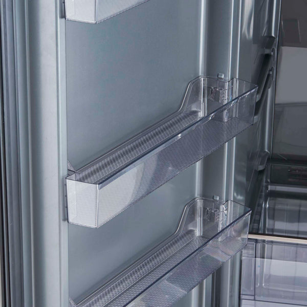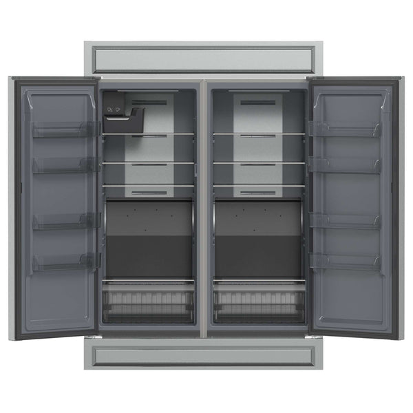 The Fortezza 60 Inch Convertible Refrigerator/Freezer with Trim Kit has Total No Frost cooling and an Energy Star certification, keeping interior temperatures steady without ice buildup. Inside, you'll find adjustable shelving, door storage, and a galvanized steel-coated interior for long-lasting performance. The digital control panel offers precise temperature settings from -24°C to -14°C, while the Fast Freeze function locks in freshness quickly. An automatic filtered ice maker delivers crescent-shaped cubes on demand. When used in refrigerator mode, it holds a steady 0°C to 8°C. Adjustable shelving, door storage, and a galvanized steel-coated interior offer flexibility and durability. With counter-depth dimensions and a stainless steel finish, it’s a clean, modern fit for any kitchen.