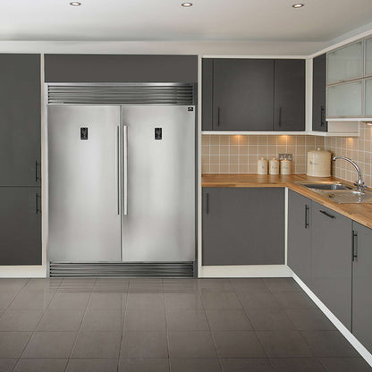 Refrigerator: Dual 28-inch Rizzuto units with decorative trim combine to create a built-in 60-inch appearance. The convertible function allows easy transition between refrigerator and freezer modes, providing a total storage capacity of 27.6 cu. ft. for ultimate flexibility and convenience.