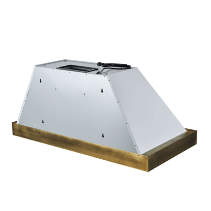 Designed for both style and performance, the Vittorio 48" Range Hood keeps your kitchen fresh with a 600 CFM motor that efficiently removes smoke, grease, and odors. The three-speed fan control adapts to various cooking needs, while dishwasher-safe baffle filters ensure easy maintenance. Enjoy seamless operation with touch and remote controls, and brighten your cooking space with energy-efficient LED lighting. Engineered for low-noise performance, it allows for a peaceful kitchen environment. With its sleek white finish and antique brass accents, the Vittorio brings vintage charm to any kitchen design. The versatile installation suits both wall-mounted and under-cabinet setups, while the 3-minute power-off delay ensures continuous ventilation even after cooking.